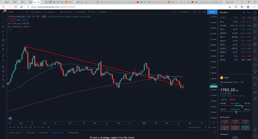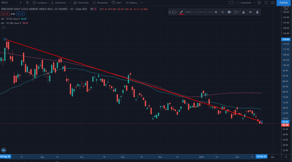 Where NUGT is down more…about 100%, or about 6x down of gold itself.