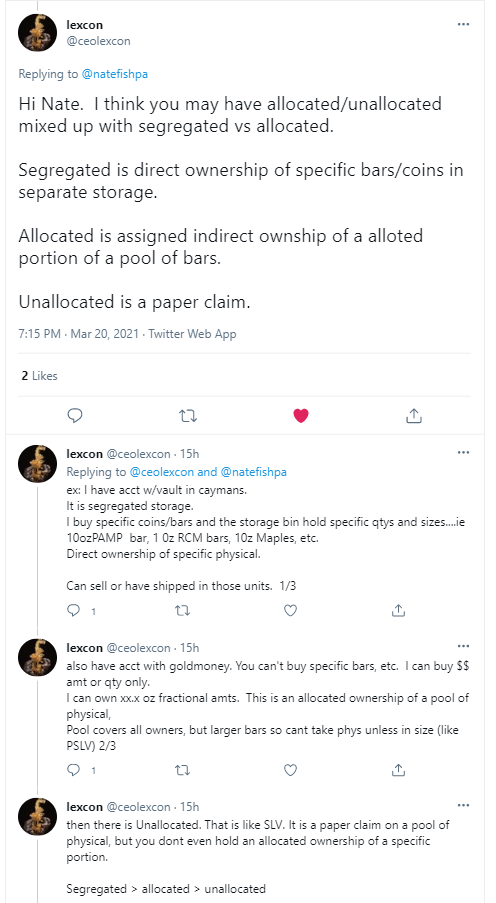 I started out a few weeks ago talking about allocated and unallocated. I THOUGHT that allocated essentially meant there was a pile of bars, and those bars were registered to you. Then, I thought with unallocated, there’s a pile of silver there, and you have a stake on a portion of them, but not an actual bar.