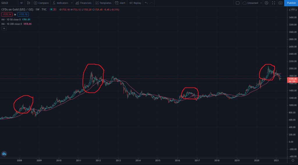 So if we have gold in that same time period, AND if it was inverse, we’d expect it to decline with a sharp valley at the end?