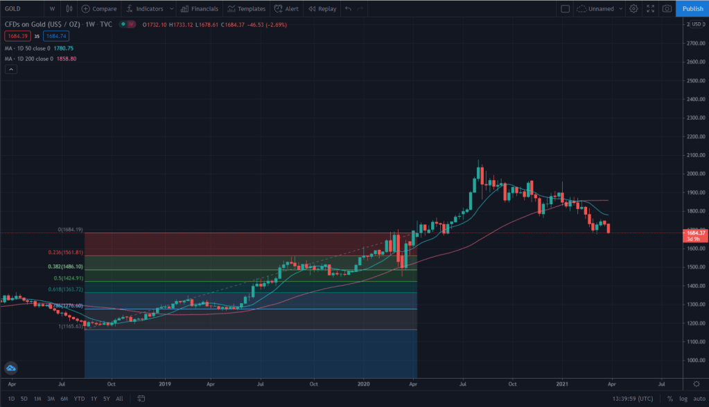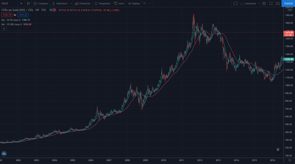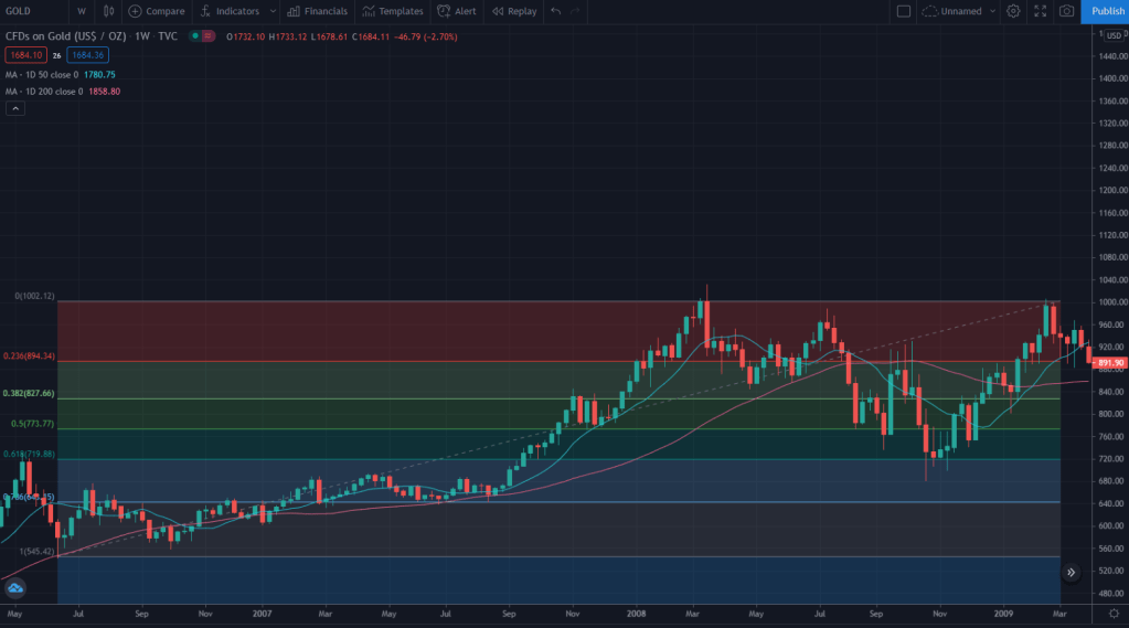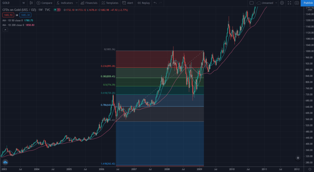 And with this – I’m going to look back at two massive run ups in gold to see if we can perhaps track a bottom for now, and perhaps then see where this ceiling goes?