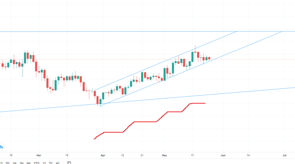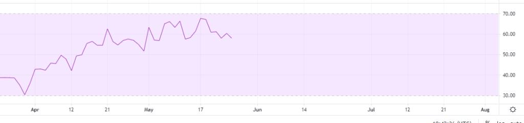 It doesn’t appear over 70 at the moment, and this looks like the daily could still have some legs. I listened a lot to John Howell on YouTube to get me a lot of my technical trading understanding. I’m not a technical trader, but I feel it’s extremely important to understand price action and patterns to see where the psychology of buying or selling COULD go.
