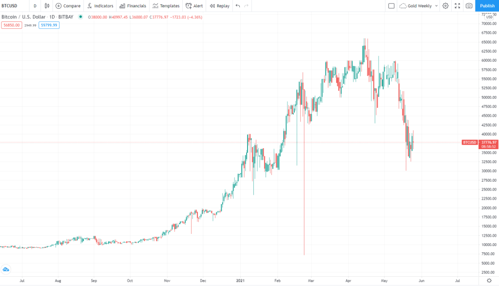 This then causes a chain reaction of sorts, where people see their cryptos going down and then selling. This is perhaps an explanation as to how you can see 50% corrections in a month, or even 20% in a day.