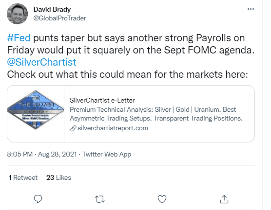 I’d say there’s one hole in my thesis with gold and silver. If tapering is supposed to be bad for gold and silver, because it somehow strengthens the dollar, you’d think the reverse then would be true. Not tapering is good for gold and silver, right? I saw this on Twitter and it’s hard to un-see…