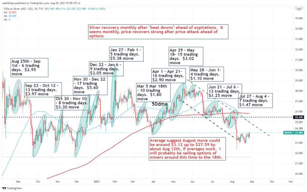 Now, to wrap this up, we look at silver recoveries. Remember the charts I mentioned about the beat downs and recoveries every month? Well, Friday was the start of the recovery…