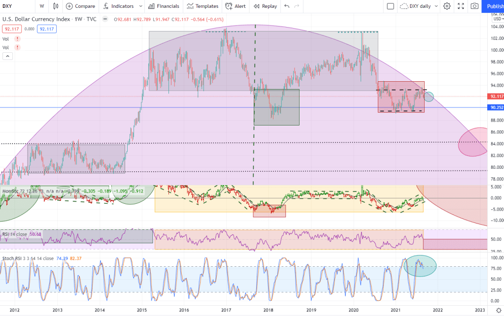 - The DXY is about to rollover and head south.