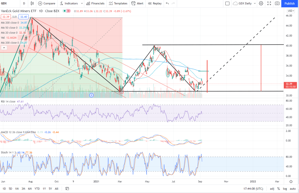 So gold has a double bottom pattern in, it would then make sense that we could see this in the GDX, right? Yup.