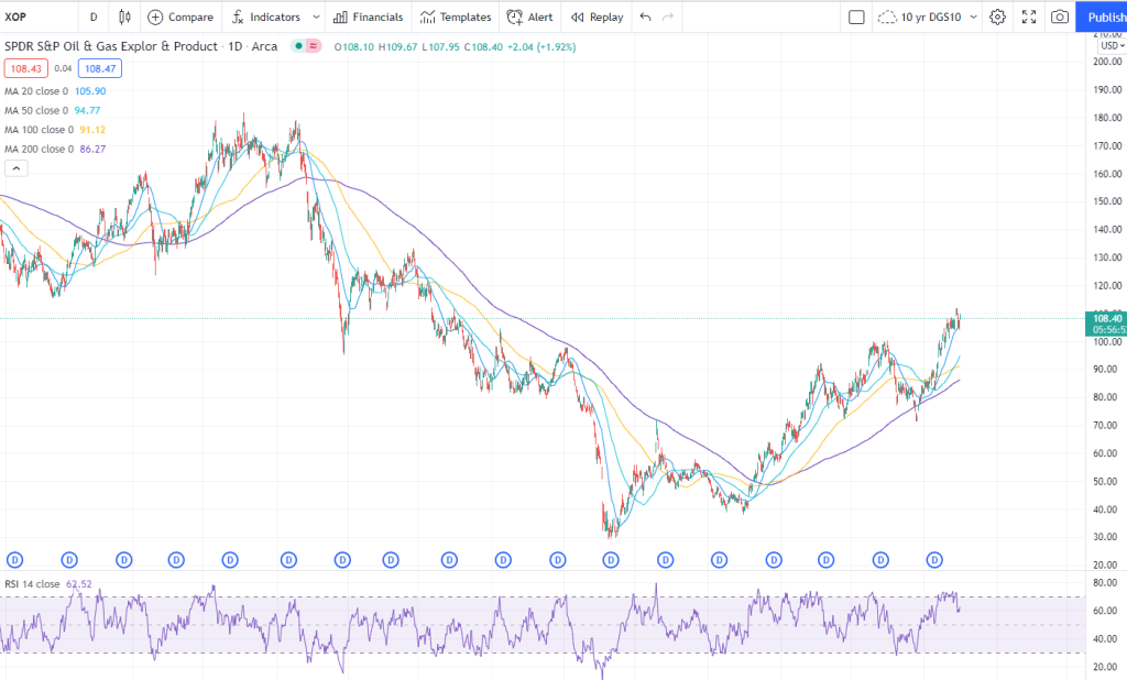 These have a lot of the same names as XOP, but different ratios. I see TELL in this one. Let’s look at the charts.