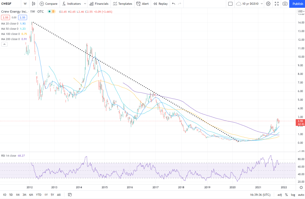 Last up is Crew energy mentioned by some. I did not see this listed in either ETF. This tells me it’s a smaller market cap. Let’s see what they do…