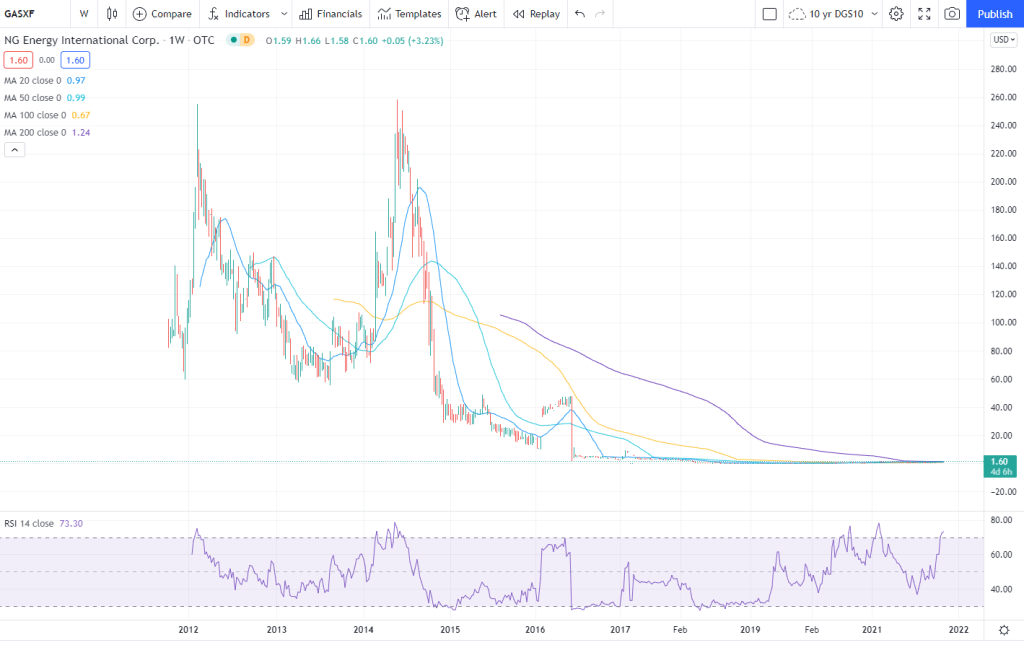With the companies, I just looked up NG energy in Columbia, the GASXF. Ouch. I’m not going near this. Maybe it’s a great turnaround story. Don’t know. Might be internet hype. I’m not a fan of Colmbia for business, as there was a miner there awhile back I had for a cup of coffee and got out. What strikes me is this chart. It has doubled in the last 6 months, but I don’t know anything about this company other that it got the shit beaten out of it. Some talked about newsletters above, I’ll check them out – but just looking at charts, this is a HELL NO.