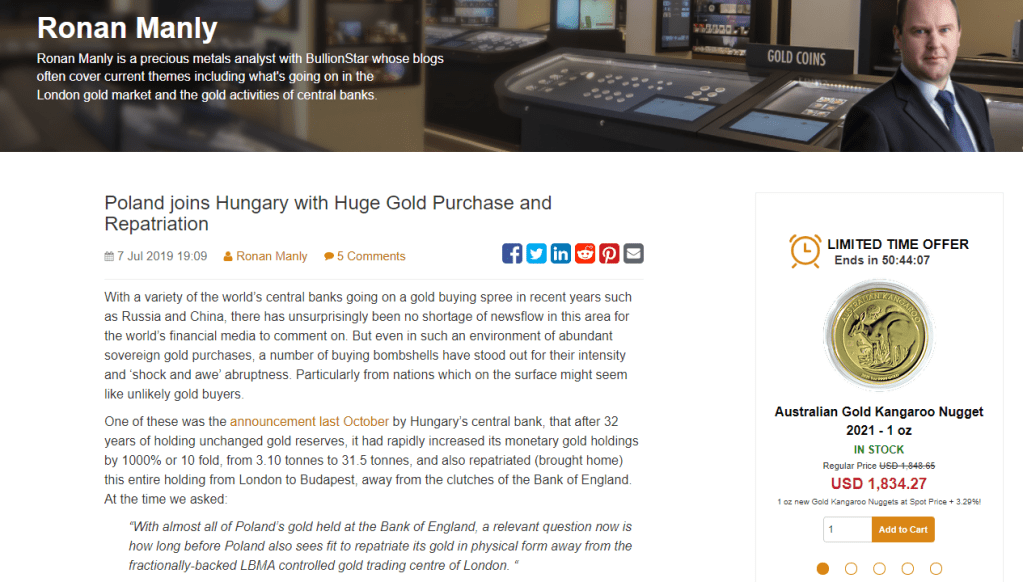 - This article from the Gold Eagle also talks about Germany’s plan to repatriate about 50% of their gold, so it wasn’t looking for all of it to come home. This, as well as others above, mention how the Germans asked for a full audit of their reserves and this was not performed by the US. All of these articles also state the plan was to be 7 years, but only took 3 and was completed in 2016. The article also mentions why you might have reserves abroad: “Practical reasons as it makes sense to have reserves in diversified locations so you have access to markets should you need to trade the reserves”. The article then writes: “In 2013 a Bundesbank spokesman said “we have no intention to sell gold” adding that the decision to relocate the foreign held gold “is in case of a currency crisis.” This article then states: “This leads on to security reasons. During the Cold War the Bundesbank wanted to keep its gold in the West in case of an invasion from the Soviet Union. It was also a way of supporting the country’s currency knowing there were reserves held securely abroad, should the country need to use them.” To me – it seems there’s a narrative by some that the gold was removed to prevent Germany from creating war, but the German narrative was to protect it from Russian invasion. Interesting. What then comes is this: “It was in the wake of the U.S. subprime crisis, the Lehman collapse and then the ensuing eurozone and global debt crisis in 2012, that prompted voices in Germany to call for an audit of the precious metal held abroad.” To me, this strikes a nerve as to why many countries started to want to re-patriate. Perhaps not trusting the books of the country holding it? This then talks about WHY: “By 2020, the Bundesbank intends to store half of Germany’s gold reserves in its own vaults in Germany. The other half will remain in storage at its partner central banks in New York and London. With this new storage plan, the Bundesbank is focusing on the two primary functions of the gold reserves: to build trust and confidence domestically, and the ability to exchange gold for foreign currencies at gold trading centres abroad within a short space of time“. But why the delays? It states: “Theories abound as to why this could not happen. But they all centre around the theory that the gold is not there or if it is it may have two or more owners in gold leasing arrangements…..The move to repatriate the gold to Germany was partly driven by rumours that much of the gold held offshore may have been “rehypothecated” as suggested by GATA.”