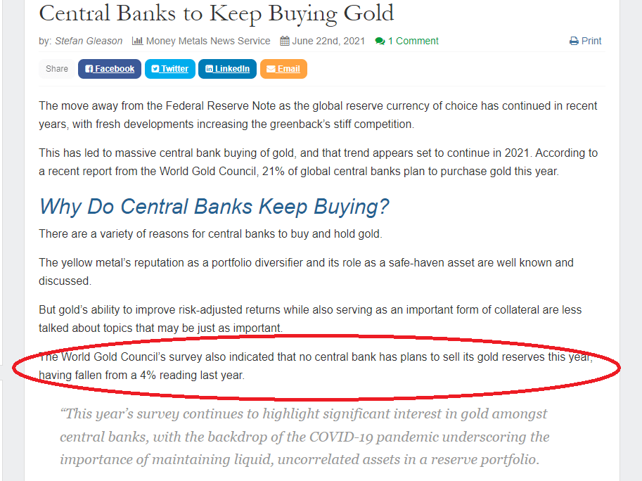 - Central banks all appear to hold gold reserves as a form of money and protect and treat it as such.