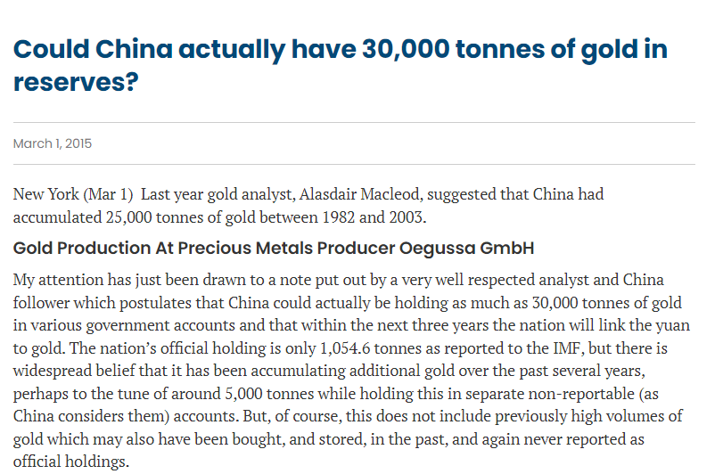 Yes. Right on. And yes China has 30 k Ton of gold approx. additionally the belt and road assets that are likely to be forfeited to them