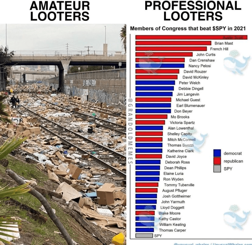 Now we are also seeing the clown car that is the fed having one after another resign because they have been involved with the stock market, THEN creating Fed policy which juiced the stocks? Only when the jig is up, and it looks like the stock market is about to rollover do these guys leave? Furthermore, you have one congressman after another making bank off of the stock market by creating laws which enrich the companies you invest in?