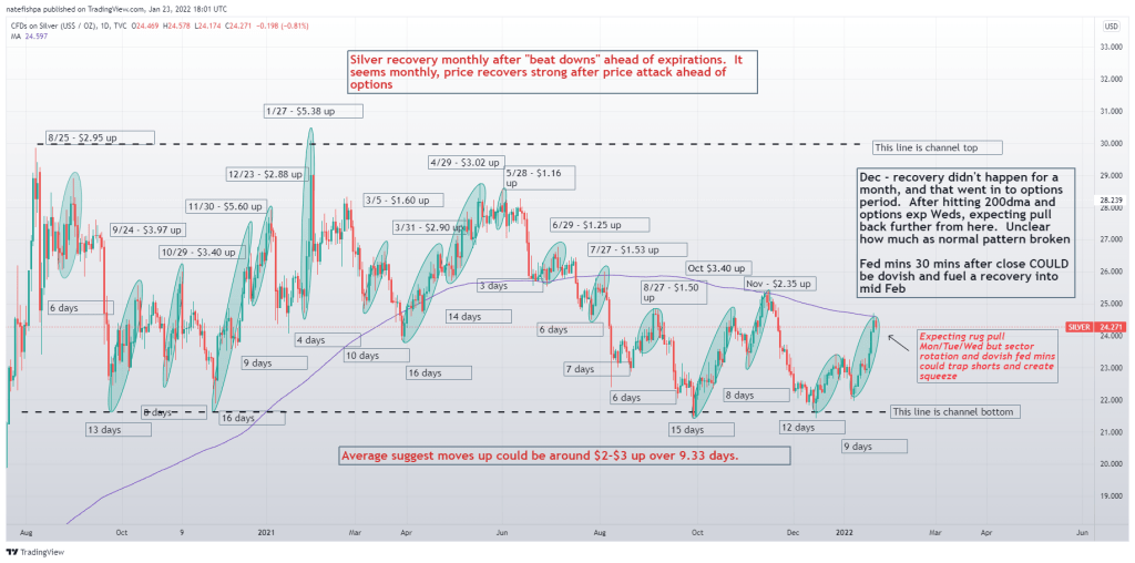 7. With the potential for more supply chain issues, NOW we are dealing with high nat gas prices in Europe and smelters now closing shop. This threatens new supply coming to market, and King New Network (yes, permabears, I know) are reporting on very little physical available. Yes, there are warehouses of this stuff in ETFs and vaults – but people continue, constantly, to mistake supply and AVAILABLE SUPPLY AT THIS PRICE. Now, if you are looking at REAL silver shortages, where are you buying? IF BOA is sitting on a massive pile they leased, they could be willing to part with this at much higher prices than spot – perhaps sell for $27-$30, then put a long hedge on at $24.25. They make $3-$6 per oz and are protected against upside losses on the physical short. This could have been BoA figuring there were significant metals shortages coming and front running. Point is – do you REALLY want to go balls deep shorting to $23 when it’s very well possible the COMEX will continue to get pummeled and physical supply really is in jeopardy? I don’t contend BoA is sitting on a pile of 800m now, but it is very possible they have a large hoard they are able to sell at a premium for desperate clients in a pinch.