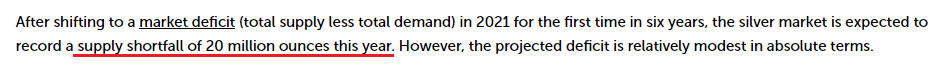 They then suggest the price of silver is forecast to be $24.80. But – they also say there will be a 20m oz deficit.