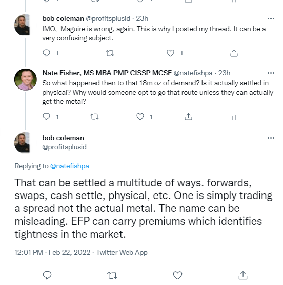 I want someone who is involved with the futures (I may tag Jim here) to walk me through how someone triggers an EFP, what options are offered, and how this is not reflected in actual silver demand on the COMEX.