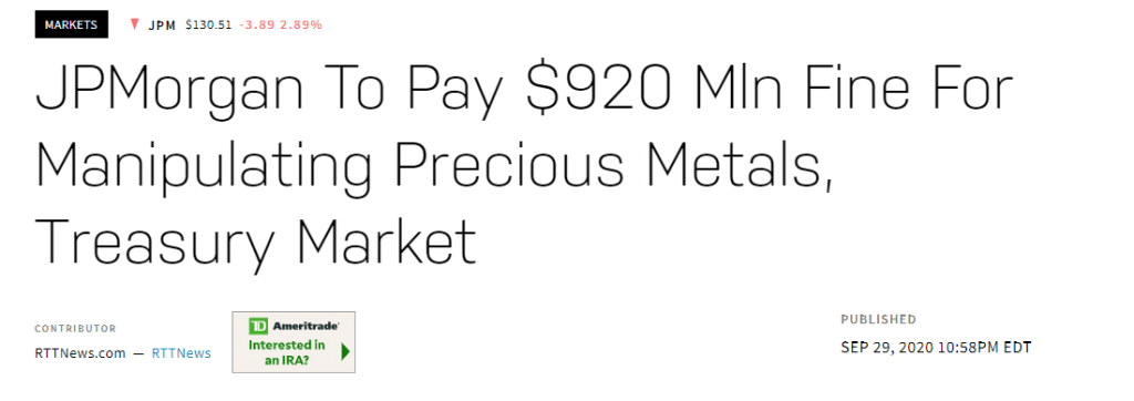 To summarize one method called “spoofing” – if you think metals would be going higher, perhaps you want “exposure” to metal and buy a gold futures contract. You may set stop losses on it to protect your downside. The banks have access to all of these stops, as you are buying these contracts through them. When markets get a little frothy, they put out articles showing gold could go to $3000 or so, then invite in a lot of weak hands. They then “sell” paper into the market in what appears to be almost infinite quantities to then direct price down. This price direction down triggers a vast number of stops, and then the banks who just tripped all of these stops buy a majority of what they just sold. This is the theory on how JPM was to amass about a billion ounces of silver in the 2010s.
