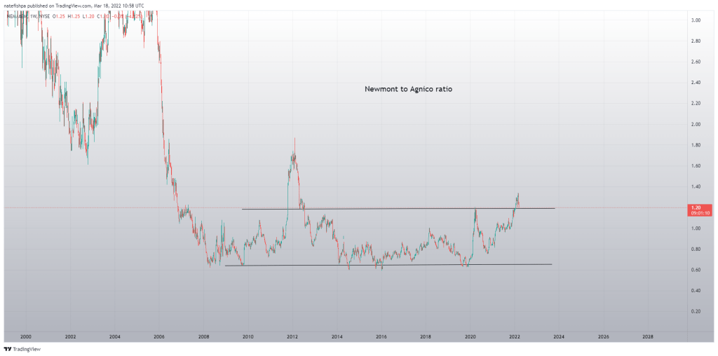 With this, you can see how the GDX to AEM ratio is going as well. To me, AEM is due to outperform its peers within GDX.