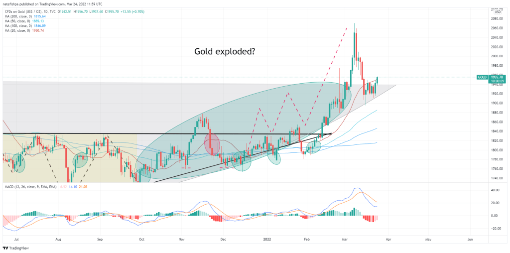 Eventually, I postulated that this would take down the markets in the article above. What I did NOT see coming was QE to that extent – which to me seemed like the money bombers that Mike Maloney predicted. That kicked the ball down the road 18 months and the inflation we are seeing from that is real. We are seeing evidence of the markets breaking down – and with that, the 60/40 model is BROKEN. Meaning, if all of your equities are going down, AND your hedge of the 40% of bonds are ALSO going down, your 401k is for shit and your retirement is evaporating in front of your eyes. In THIS environment, you need gold in your portfolio. No one in my Facebook land understands this. My friend just told me yesterday his FA moved his money out of bonds, finally. There’s a rotation about to happen people.
