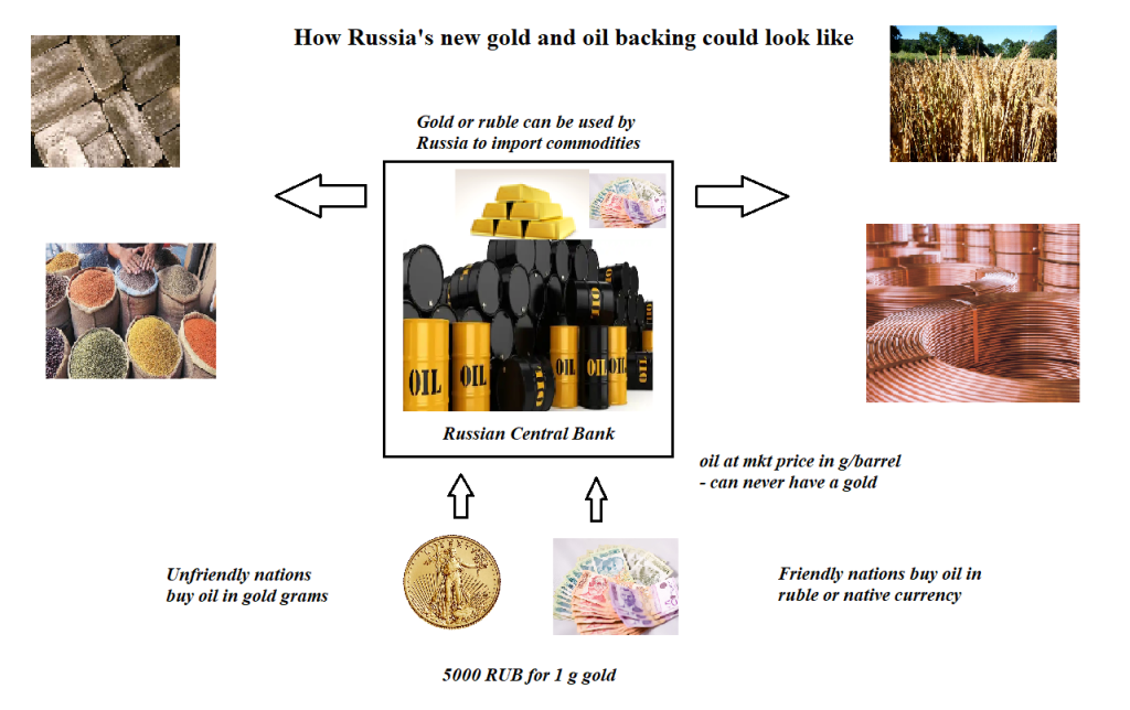But if you look at my initial chart above, it’s how I see it playing out. Russia’s commodities CAN make them extremely powerful IF it is their currency. With a close linking of gold, oil, gas, and the ruble, you can see how this can be extremely powerful.