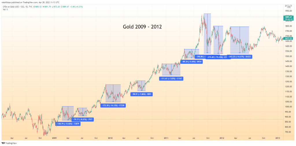 If you look at this chart from 2009 to 2012, we would get routine 7-15% pull backs. Only at the end did we get a 20% pull back, then a bounce, then a 15% pull back.