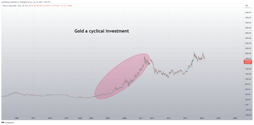Meaning, yes…over 10 years, gold didn’t perform well. But you need context.