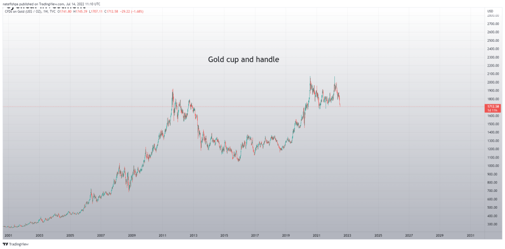 So….could the cup and handle formation lead to $5000 gold? Possibly. Could a double top at $2080ish lead to a break down? Possibly.