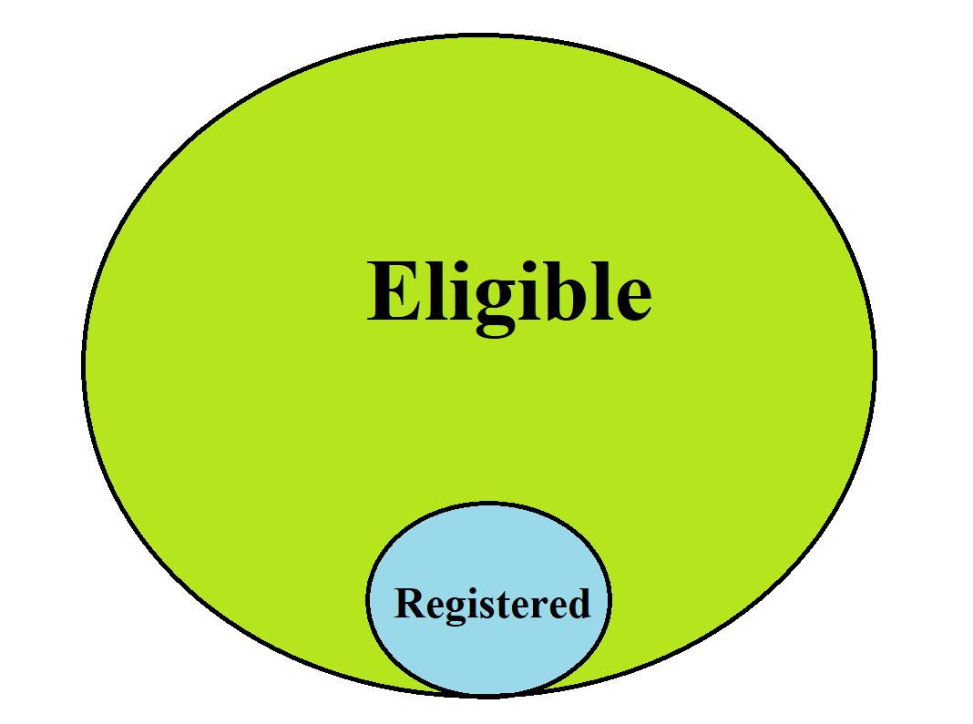 Rather than look through the lens of the eligible and registered with those bubbles – I wanted to break this down further into THREE total LOGICAL categories.