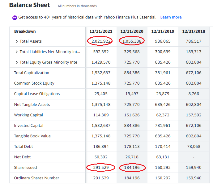 However, the share dilution of about 37% or so was offset by doubling the assets and more than doubling revenue.