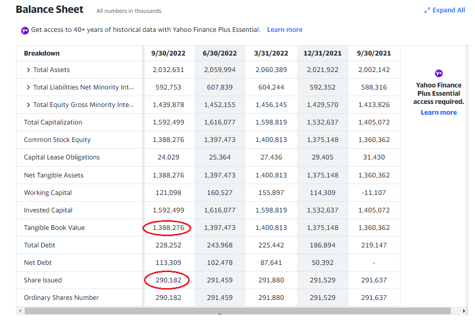 If you take the book value and divide by shares, you get $4.78 per share. Let’s take a look at Newmont here…