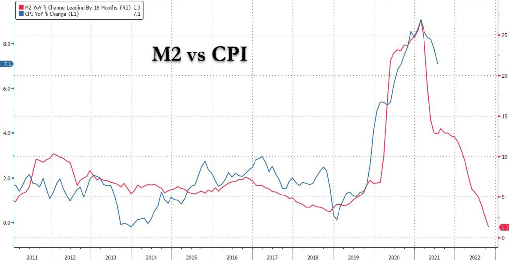 - Commodities. I feel this wave ran up a lot of things which are now in full on deflation. Houses, cars, crypto. With the freezes in the housing and cars, you need less “stuff” to build things. This bumps back the supply chain and then will start to slow production of goods.