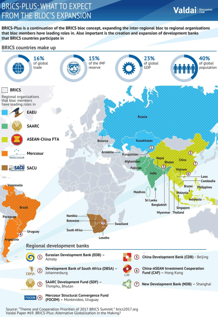 I grabbed this picture from 2018 which shows BRICS+35 at the time, and their spheres of influence.