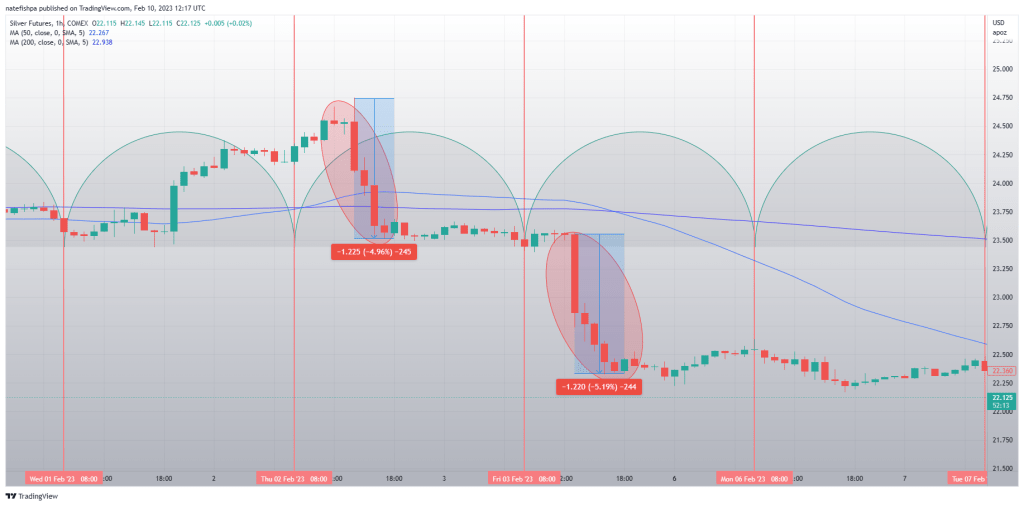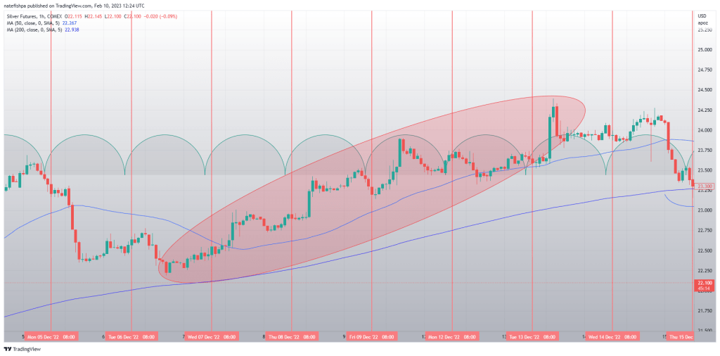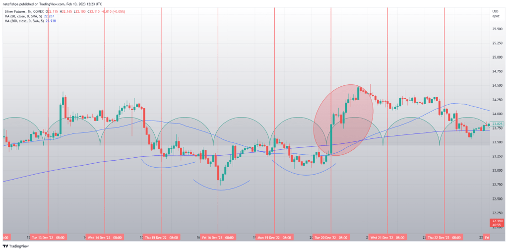 Let’s assume you know that you have a SIGNIFICANT rugging taking place perhaps 50% of the time at 0830. I want to go back a year and get a lot of this data, but let’s assume that’s the case here for stats and numbers. That means that if there were 10 trading days a month, and each event went down $.50, that is a $500 move on a micro contract. Meaning, if you had sold at perhaps 0800 for $22.50 and bought back at 0845 for $22.00, you would have made $500. Now, let’s also assume you sold at $22.50, but had a stop set at $22.60 in case it was a day no smash happened, but you see “good” silver news. What then happens is everyone that WAS expecting to have a smash didn’t get it, and their stops then trigger everything to buy UP. You lost $100 on this trade by being stopped out at $22.60.