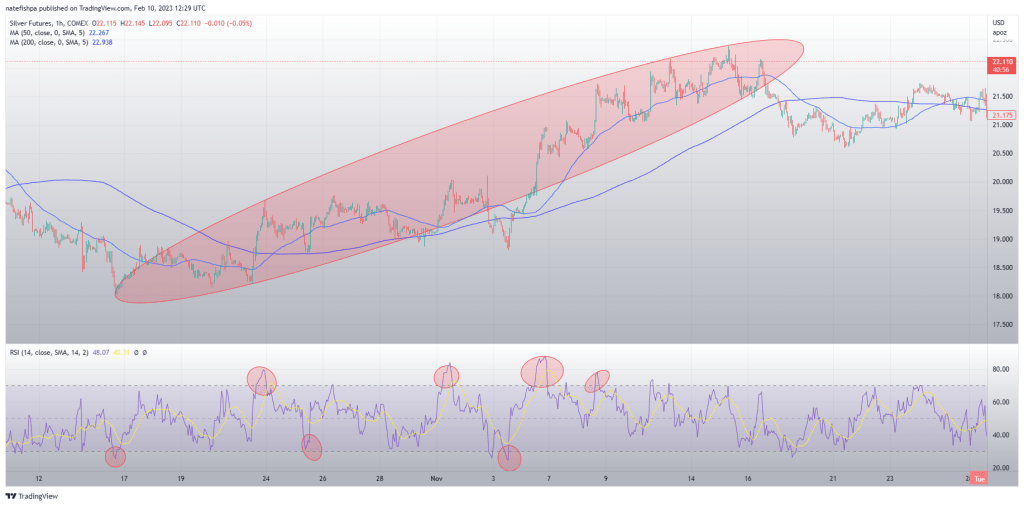 When back testing this so far, I’m seeing mixed results. In Jan/Feb 2023, it would have netted $.44 profit, or $440 for the 29 days tracked for a micro $2,000 contract. But that is every night of buying at 1800 and selling at 0350. That’s a 25% profit!! However, had you just bought at $24.31 at the open on Jan 3 and sold at $22.53 it was a significant loss. Jan was a tough month to trade!