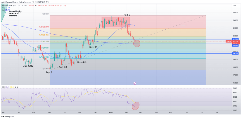 This “theory” showed 18 months of data where when silver was range bound, there was a pattern. It seemed to end Dec 2021, to an extent. I think it was something like 4-5 weeks after my interview. Note the big green circle to the right with the missing up move? That was the end of the “recovery” trend.