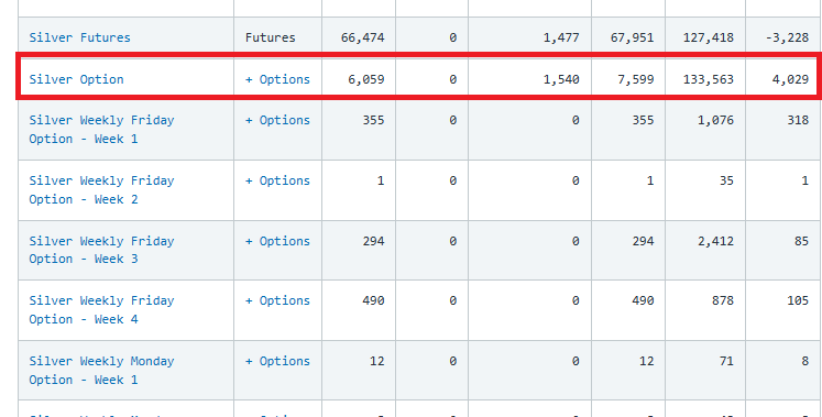 On the CME page, go to Data –> Volume and Open Interest –> Metals –> Silver Option