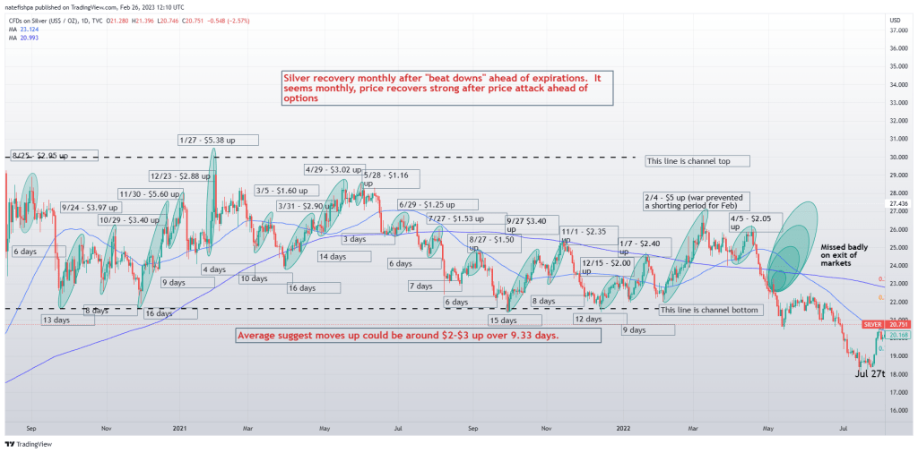On my Kinesis account, I’m working to fund buying some ounces of physical vaulted at this level. The last few weeks many of us have been worried about the SEC moves with anything to do with crypto, and it happened with TD. It’s disappointing, because I feel my government needs to understand the difference between a shit coin and a metals-backed digital currency, but many of us knew the waters were choppy and look forward to getting a new partner moving forward. My point is this – I can short the paper games on the chart to hedge my mining stock losses, AND I can also see this level as a buying opportunity to stack silver in a vault.