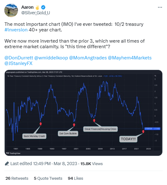At the exact same time, you have people like you and me who see the defensive posture in gold and silver as a hedge against the type of doom from the dotcom and global financial crisis. Aaron posted this yesterday.