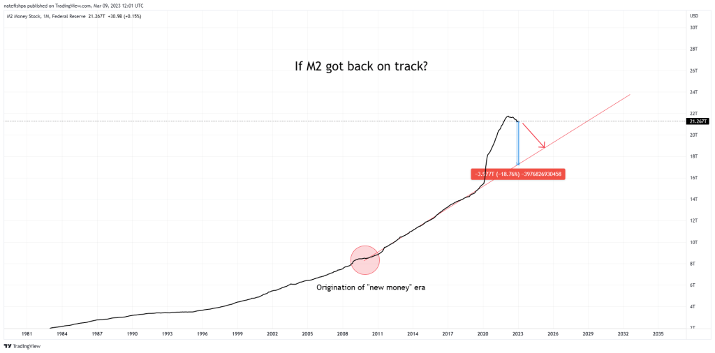 This is not necessarily massive deflation, but the M2 money stock may contract by as much as 20% in the next 3 years. This is demand destruction through much, much higher rates that choke off expansion, home buying, and people starting new businesses. This will have asset values dropping.