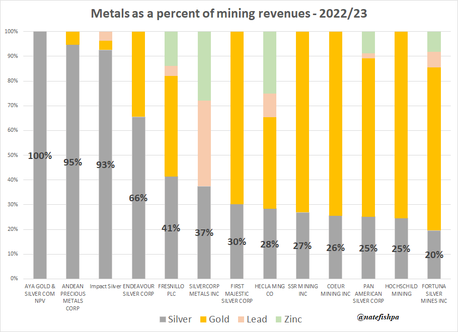 You could also see the “rise of the silver primary miners” in 2011. What 99.9% of stackers don’t understand is that silver primary miners have gone the way of the DoDo. Steve St. Angelo has some pretty charts which correlate gold price to the production cost of gold, but the same is not true of silver. Why? Because, today, less than 5% of worldwide silver is coming from “silver primary producers”. My research has found FIVE primary producers with over a $100m market cap that have the primary source of their metal to be silver. Some are borderline with now maybe 40% silver – but their secondary metals may be gold at 35% and base metals at 25%. So “technically” it is a silver primary, but the majority of their revenues is not silver, just the leading pool of metals. One, in that case, can say they have 60% non-silver revenues.