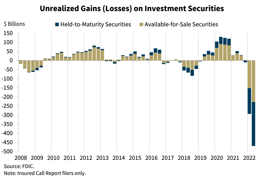 So, what this is essentially saying is that a lot of cash that these banks invested in securities went to “money heaven” as Rick Rule likes to say about Penny Dreadful miners. Perhaps the next 6-12 months, rates start coming down, and unrealized losses become unrealized gains.