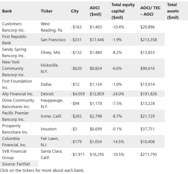 MSN (I believe via MarketWatch) just put out a story with the 20 banks with the biggest unrealized losses at the moment.