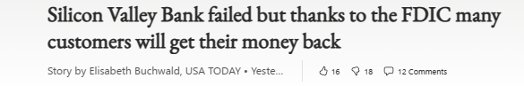 Apparently with SVB, a vast majority of the accounts had over the $250k limit for FDIC insurance. Those below this will be made whole, those over it may get pennies on the dollar down the road.