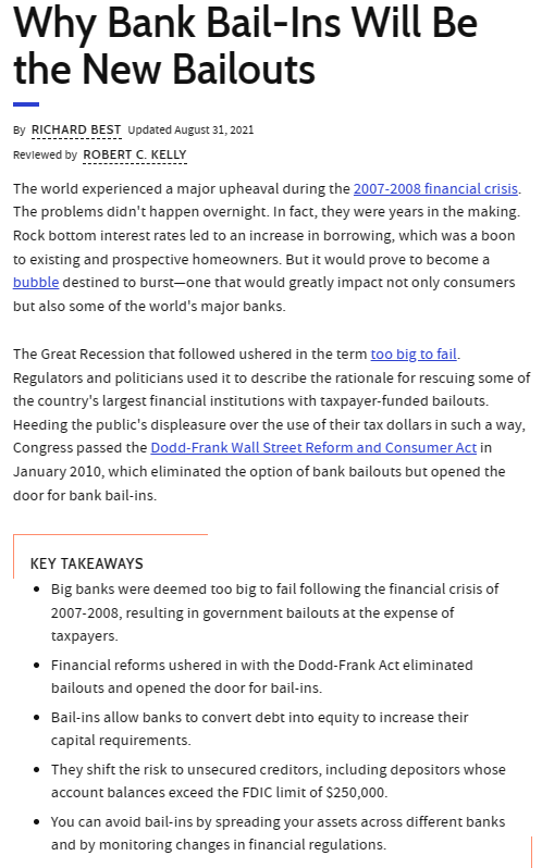 You then have investopedia in 2021 saying that bank bail-ins wll be the new bail outs.