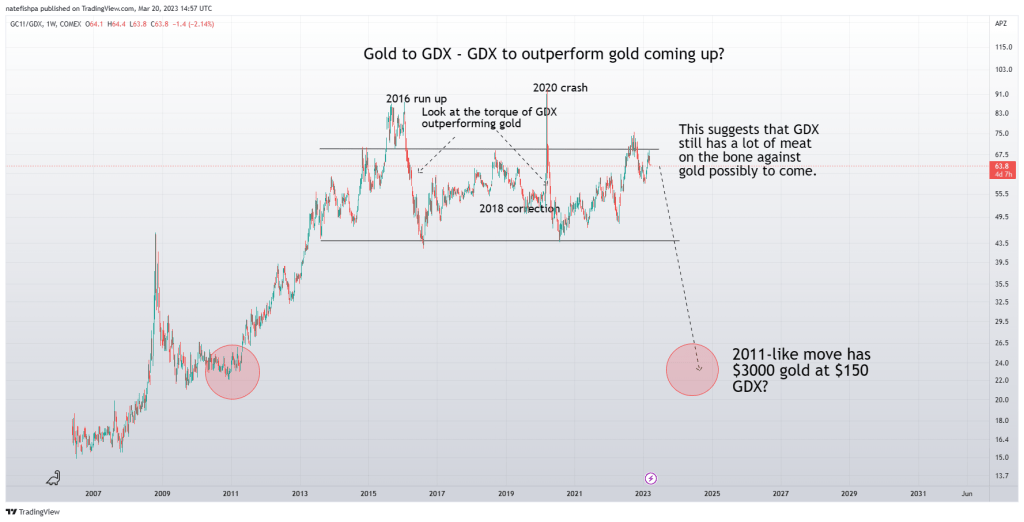 In a mania like 2011, it went 20:1, which suggests even a $150 GDX price, or about a 5x from here.