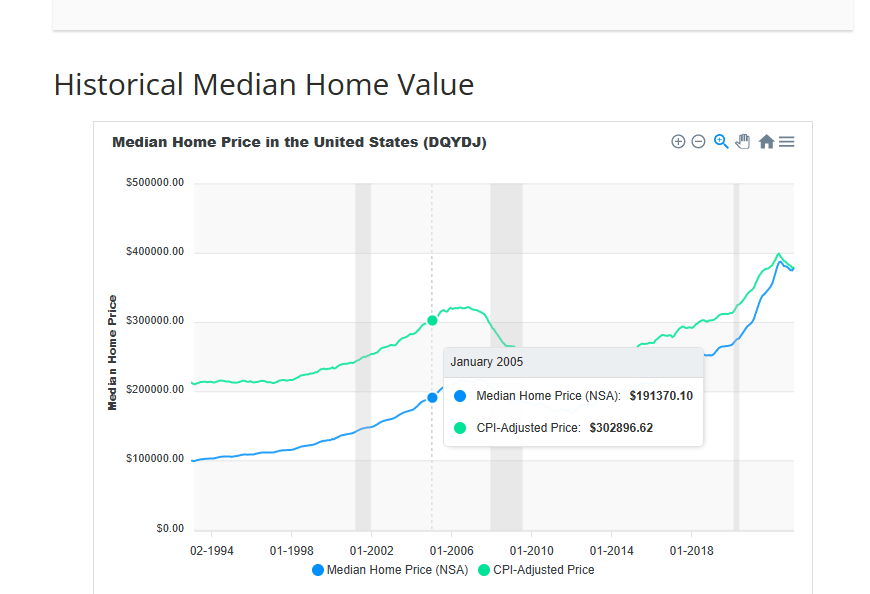 The avg home value then was $191k, or $302k adjusted for CPI. The interest rate in 2005 was comparable to today.