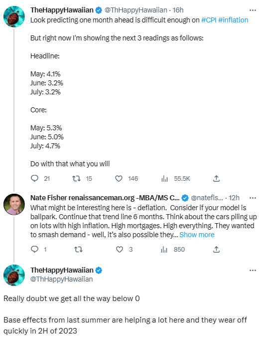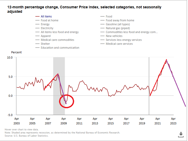To me, we have been seeing evidence of “disinflation”, where prices are still rising, but at a lower rate. We are not at the point where prices are falling yet.