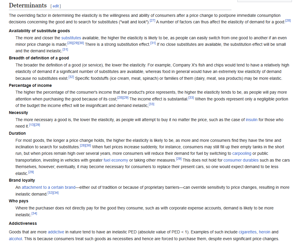 How important is that market to society? For example, a sudden supply shock to gasoline might make the price go vertical upward, but perhaps a shortage in a brand ofchewing gum wouldn’t really be a big deal as people may just substitute another brand.