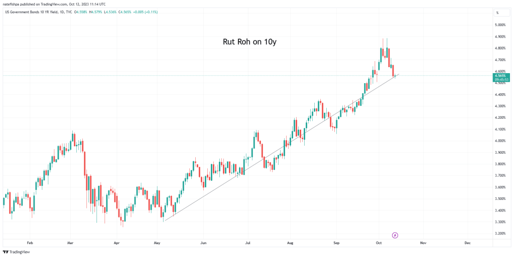 This….is higher for longer. “Follow the yellow brick road”. But it’s kinda. Sorta. Until one of their friends needs the rates to come down. Then, we have it. Until then, expect the muppets to be marched out to give hope – to have the retail buy dips from the banks selling their bags, to then have hawkish tunes to have the hedge funds shorting things to oblivion and make money on retail selling those bags back cheaper to them.