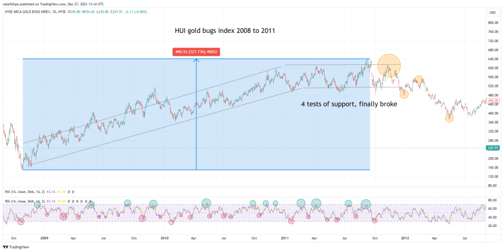 Let’s look at the HUI from 2008 to 2011 to see what we can learn.